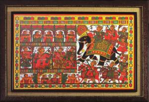 4.6. The other was use of proper colours: soft and subdued, the lines firm and sinuous and the expressions true to life. The colours, at times contrasting and at times matching were artistically employed to create magical effects. That effect was enhanced by the skilful shading of the body-parts, giving them a three dimensional appearance; and providing depth to the picture.