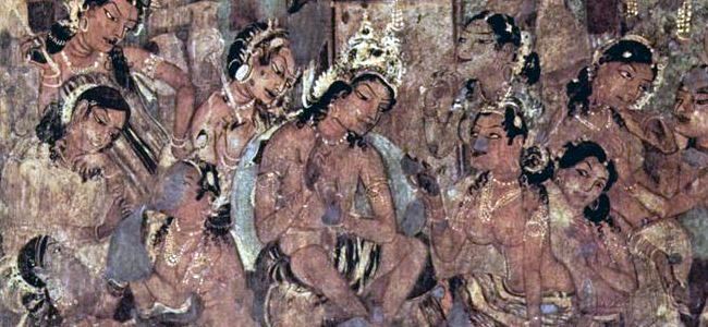 3.1. There is a marked absence of portraitures in the ancient murals. One rarely comes across the physical representations of the monarchs or the patrons who caused the paintings to be done. This could be viewed as one of the strength of Indian art. It strived to move away from the ephemeral towards the long lasting; and from particular to universal. It also meant that the ancient Indian kings were not vain enough to assume their portraits would override the art.