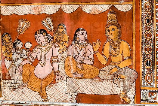 Murals in Trailokyanatha Jeenaswami Temple ceiling in Tiruparuthikunram near Kanchipuram, Tamil Nadu, South India, India. Tiruparuthikunram also called Jaina Kanchi is a well-known shrine for Jains. There are three temples in the campus, one for Vardhaman