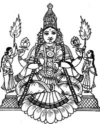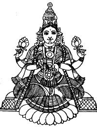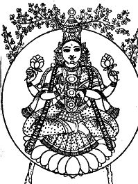 30.1. The description of Sri as Padma-malinim is ordinarily taken to mean Sri who is decorated with lotus-garlands. But, Tantra regards Sri as moola prakrti the cause of the whole of this existence; and, lotus as a symbol of the created world.  The world, as we experience, is characterized by several principles (tattva) as enumerated in Samkhya (avyakta, mahat, ahamkara, the senses, the physical elements etc). And, all these tattvas are but the aspects of Devi as she evolves from a-vyakta to vyakta, from the infinitely subtle to the gross physical world. The lotuses strung on the garland adoring Sri symbolize her tattvas.
