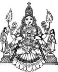 32.1. The Dhyana-sloka is dedicated to the Devi who grants the wishes of her devotees (sarva-abhista-phala-pradam) and ever blesses with abundant riches (sampath-samruddhi). She is described as glowing with crystal clear complexion (spatika sannibham), adorned with gorgeous dresses (divya-ambara–krutam), sparkling gem-studded crown (nana-ratha-kirita) and earrings (kundalam). She is holding a pair of fresh and tender lotuses (padma-komala – yugam).  And, a most beautiful gentle smile lightens up her radiant face.