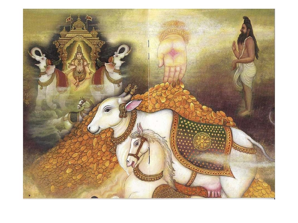 24.1. It is said; the term karshnim also means cow dung,which is very essential for the success of agriculture. Plenty of cow dung is also indicative of abundance of cattle wealth (gau-samriddhi). There is a close association between Sri, cows and cow-products. The other ancient texts too cite this association. For instance; Maitrayani Samhita mentions that the other name for cow-pen is Lakshmi (goṣṭho vai nāmaiṣa lakṣmīḥ : MS: 4.2.1). And, Satapatha Brahmana states that one who has attained Sri (prosperity) is known as purishya, having plenty of cow-manure (purīṣya iti vai tamāhuryaḥ śriyaṃ gacati samānaṃ vai purīṣaṃ: SB: 2.1.1.7).