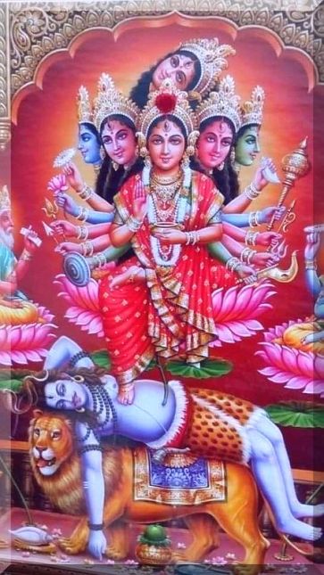 Devi six faces on Shiva