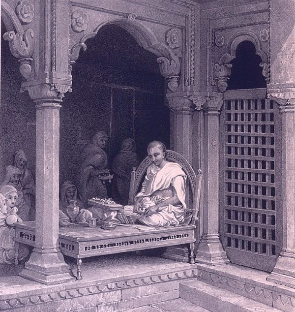 Preacher Expounding The Poorans. In The Temple of AnnaPoorna, Benares. Lithograph by Prinsep (1835)