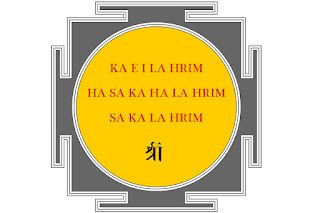 śrīm̐ sau klīm̐ aim̐ hrī / om̐ hrī śrī / sa ka la hrīm̐ / ha sa ka ha la hrīm̐ / ka e ī la hrī / hrīm̐ aim̐ klī sau śrīm̐