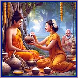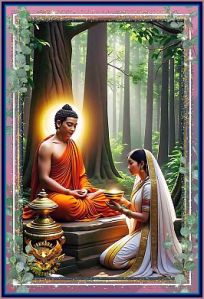 [ Visakha’s younger sister was Sujata who later married Kala (?), son of Anathapindaka one of the leading benefactors of the Sangha and who constructed and dedicated in service to the Buddha the Jetavana monastery at Savatthi. Sujata was described as haughty, obstinate and harsh in speech; but, later reformed on listening to Buddha’s discourse (Sujata Jataka).]