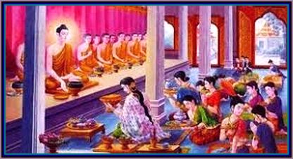 5.3. Migara invited the Buddha with his monks and arranged for rich food. But, he asked Visakha to entertain the guests and supervise the hospitality. Migara, from behind a curtain, listened to the Buddha’s sermon imparted at the end of the meal.