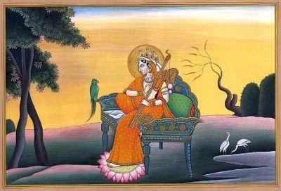 53.2. Matangi is considered by some as the Tantric form of Sarasvati the goddess of speech (vak) and learning. Both the goddesses are associated with music and speech. They, however, differ in certain aspects. Sarasvati is sattvic in nature and represents the Vedic learning. Matangi is tamasic and is related to magical powers. While Sarasvati is the power or the awareness that generates speech, Matangi is the articulated speech (vaikhari vak), while Mahavidya Tara is the un-manifest speech that resides in breath (madhyama-vak) .Matangi is posited in the throat centre (visuddhi). The parrot which she holds (keera kara) signifies the ability to talk.