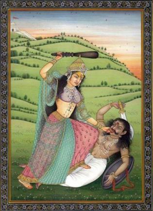 42.1. Dhumavati , whose nature is smoke, is again a Mahavidya who is not known outside the Mahavidya cult. There are no references to her in the earlier mythologies. She , unlike most other Mahavidya, is old, ugly and sulking. She is the only Mahavidya without a consort. She is a widow associated with strife, loneliness, unfulfilled desires and inauspicious things of life.