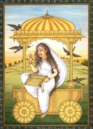 Sri Raja Mathangi travels in Gaya chakra, a chariot which when moves, the atmosphere will be vibrating with sweet music. She is the embodiment of Nada (Sound). She stands for the propagation of Jnana (Knowledge), art, education, music and so on.