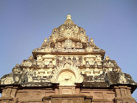 The whole of the exterior of the temple is covered in a mass of relief sculpture, notably of rearing lions (yalis), Nandis, attendants of Shiva (ganas), Shiva, and other deities.