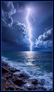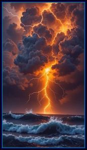 “When lighting breaks all of a sudden it is red, the heat. Next we see the flashes of white that run across the sky as rivers of dazzling light streaming down the mountain rocks in jets of white. It is then the waters. And as it strikes a tree and subsides into its trunk, it turns black.