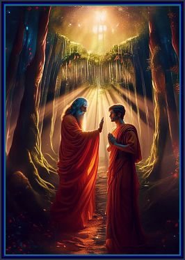 As the rivers flowing east and west/Merge in the sea and become one with it / Forgetting they were ever separate streams, / So do all creatures lose their separateness/ When they merge at last into pure Being.